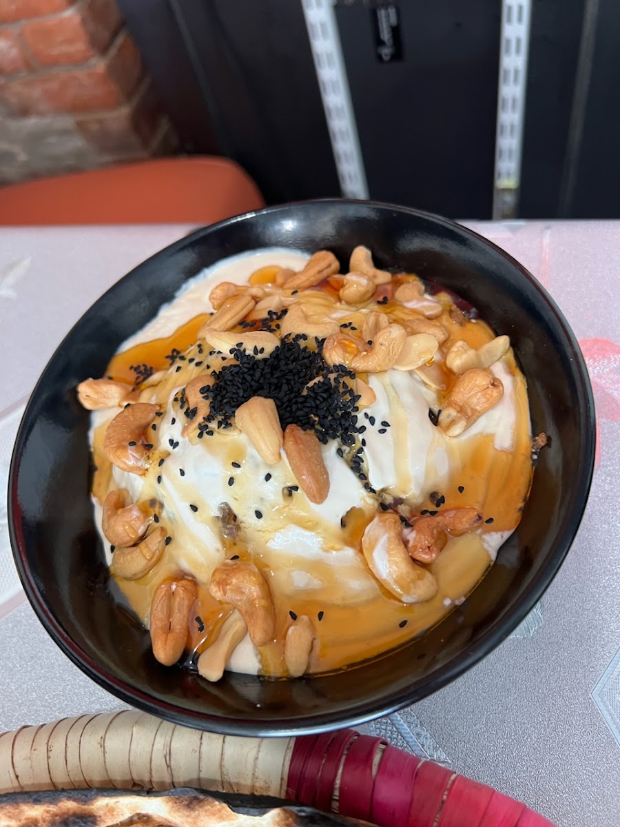 “ I tried the chicken fasha here, and it was amazing — rich, flavorful, and served piping hot in a stone bowl. What really stood out was the giant, freshly baked bread that came with it — soft on the inside with a perfect char and black seeds on top. The dish looked as good as it tasted — great presentation and even better flavor. The restaurant was quiet, clean, and had a cozy atmosphere. Highly recommend if you’re craving something hearty and authentic! ”