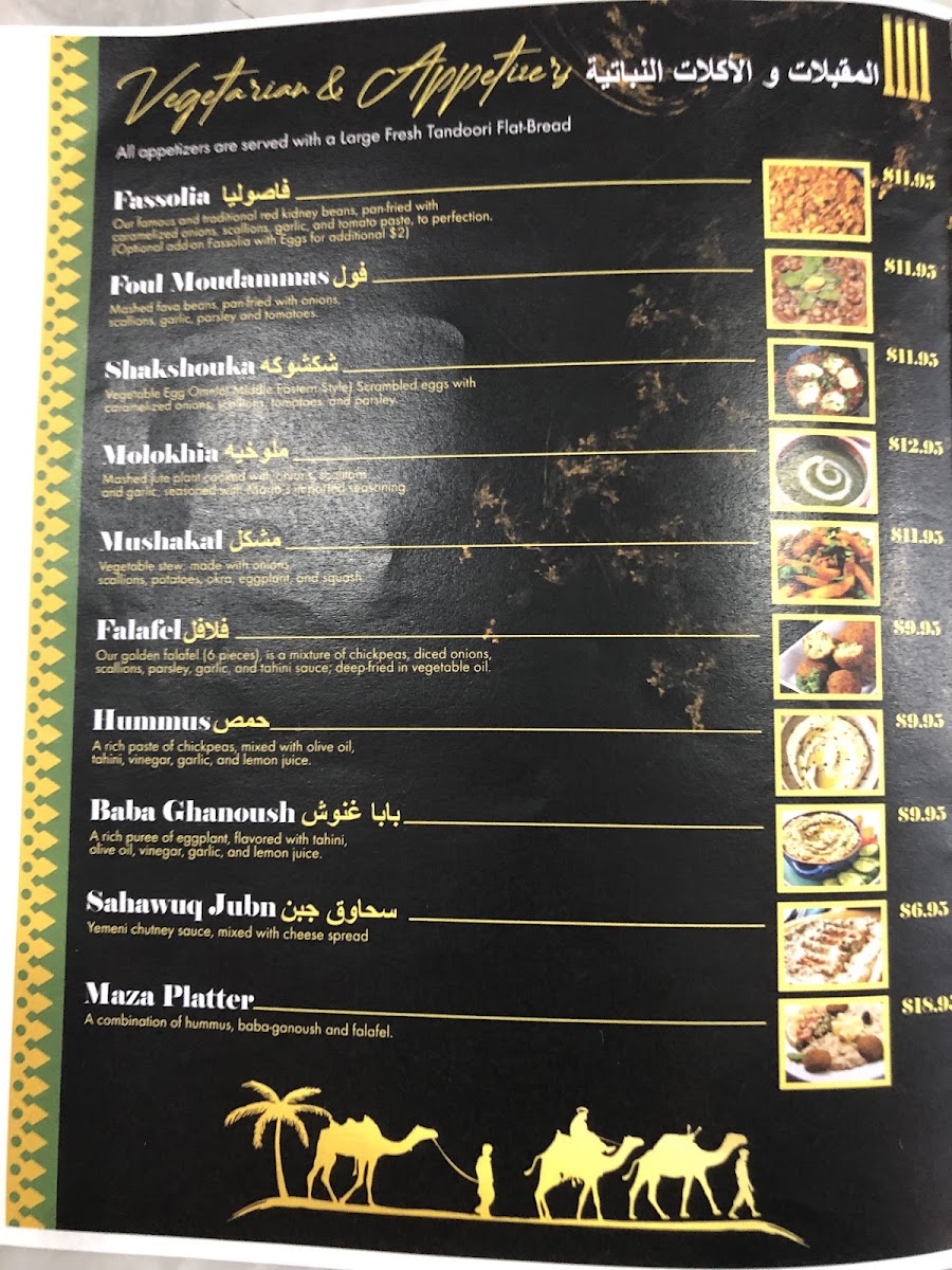 Quality yellow-fin funa, seasoned with Marib's special spice, and pan-fried with caramelized onions, scallions, tomatoes, and mixed with Yemeni gravy. Served with a large fresh tandoori rashoosh flat-bread.